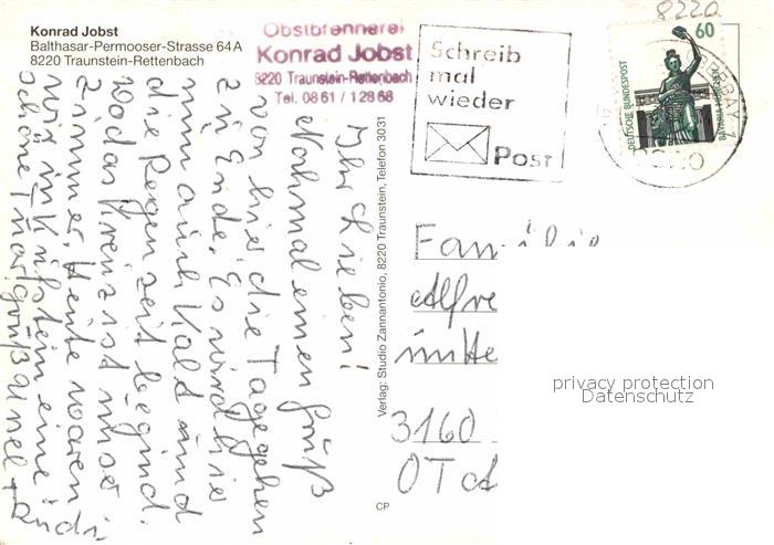 72887612 alte Postkarte Rettenbach Traunstein Obstbrennerei Konrad Jobst postalisch gelaufen Erhaltung siehe scans [WerneD78] KatCode: 11110009189155