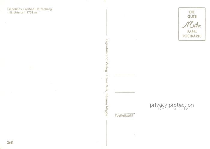 72972473 Rettenberg Oberallgaeu Freibad Gruenten postalisch nicht gelaufen Erhaltung siehe scans [PaolaD17] KatCode: 11110009780137