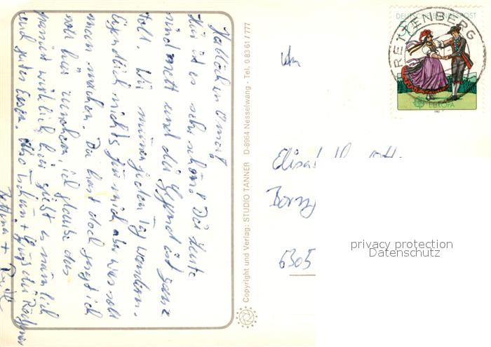 72999491 alte Postkarte Rettenberg Oberallgaeu Gruentengipfel Allgaeuer Alpen Schwimmbad Alphornblaeser postalisch gelaufen Erhaltung siehe scans [WerneD78] KatCode: 11110009780137