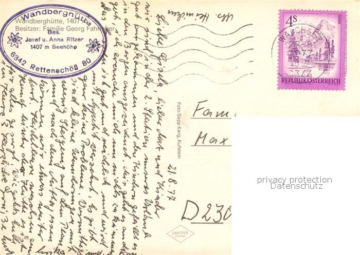 73523789 alte Postkarte Rettensch?ss Wandbergh?tte postalisch gelaufen Erhaltung siehe scans [LiesaD40] KatCode: