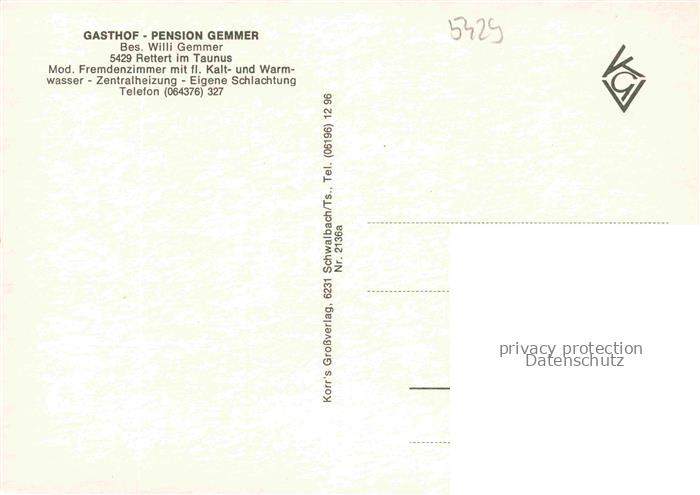 74050860 Rettert Waldweg Gasthof Pension Gemmer Panorama postalisch nicht gelaufen Erhaltung siehe scans [WerneD78] KatCode: 11110007141117