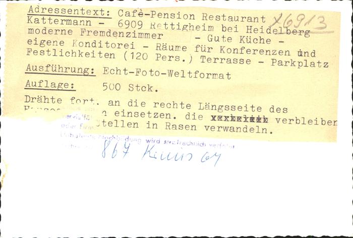 41241480 Rettigheim Cafe Pension Kattermann postalisch nicht gelaufen Verlagsrohabzug (keine Postkartenrueckseite) gute Erhaltung Verlagsrohabzug (keine Postkartenrueckseite) hz_C Katcode 11110008226054