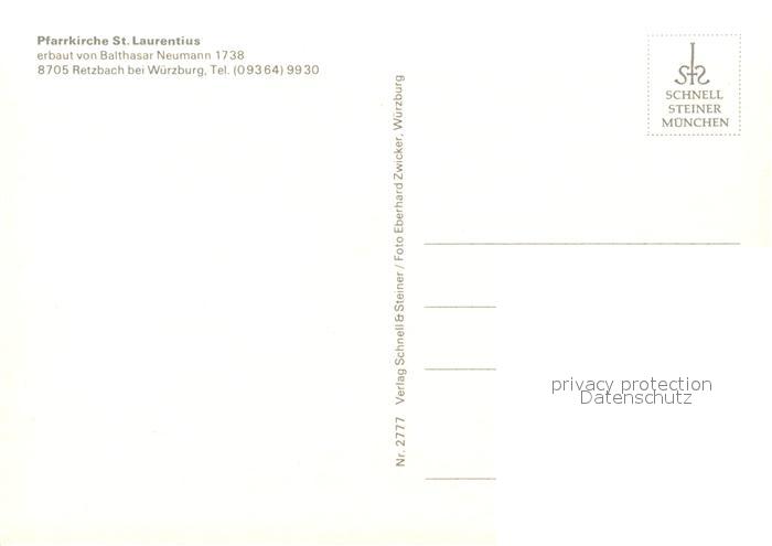 73214159 Retzbach Zellingen Pfarrkirche St Laurentius Erbauer Balthasar Neumann 1738 postalisch nicht gelaufen Erhaltung siehe scans [FriedD77] KatCode: 11110009677203