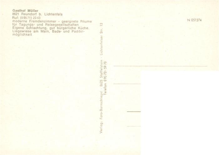 73908338 Reundorf Lichtenfels Gasthof Mueller Kirche Liegewiese Gastraum postalisch nicht gelaufen Erhaltung siehe scans [WerneD78] KatCode: 11110009478139
