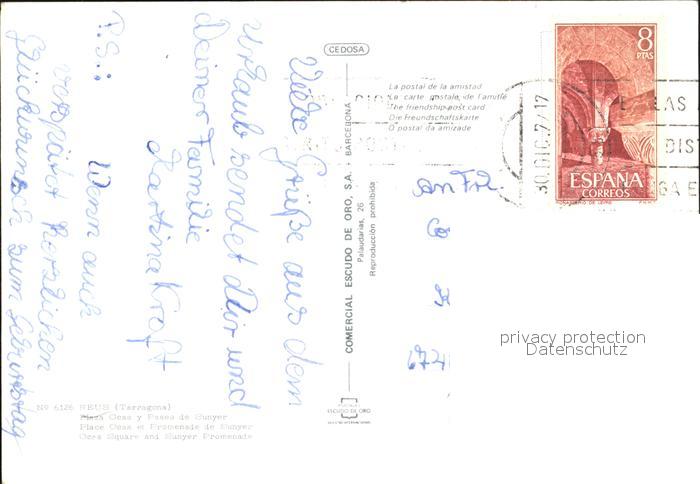 old postcard Reus Plaza Okas postalisch gelaufen Erhaltung siehe scans