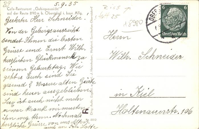 40994957 Reute Oberstdorf Cafe Restaurant Gebirgsaussicht postalisch gelaufen Alte Ansichtskarte Postkarte alte Postkarte Katcode 11110009780133