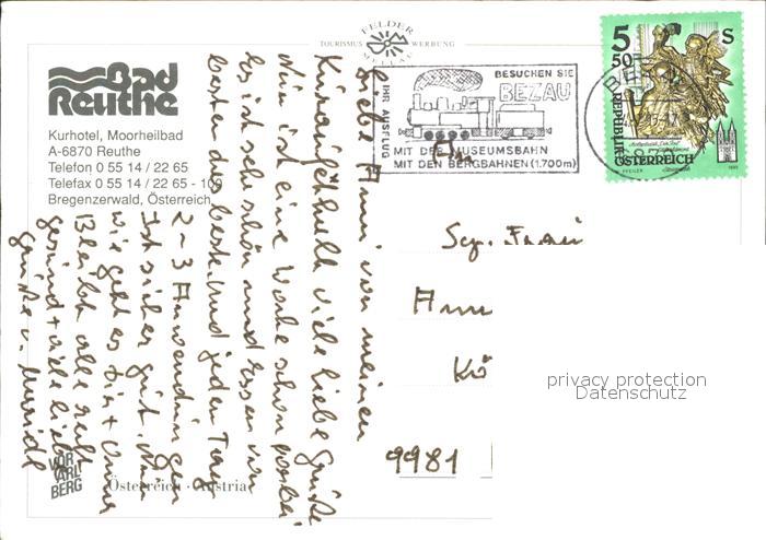 71914400 alte Postkarte Reuthe Vorarlberg Bad Reuthe Kurhotel Moorheilbad postalisch gelaufen Erhaltung siehe scans KatCode: 11390341080230