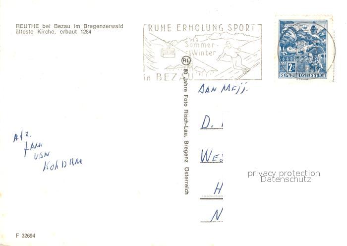 72941642 alte Postkarte Reuthe Vorarlberg Dorfmotiv mit Kirche postalisch gelaufen Erhaltung siehe scans [WerneD78] KatCode: 11390341080230