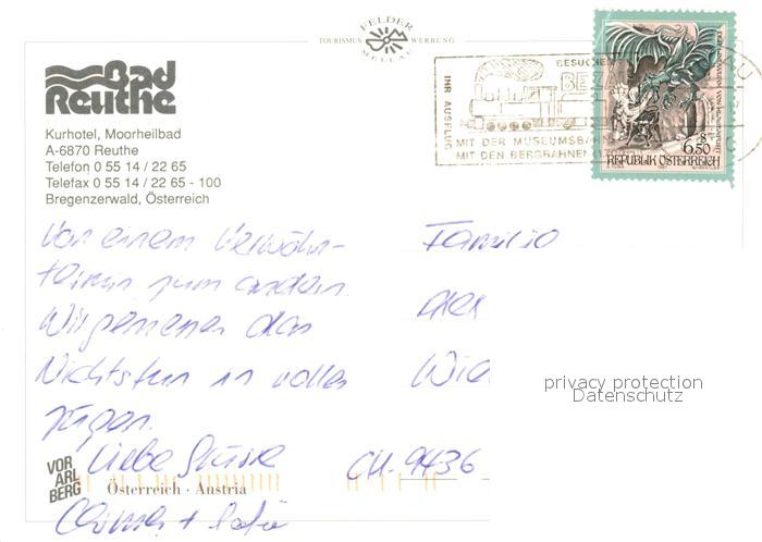 73161319 alte Postkarte Reuthe Vorarlberg Kurhotel Moorheilbad postalisch gelaufen Erhaltung siehe scans [KathaD81] KatCode: 11390341080230