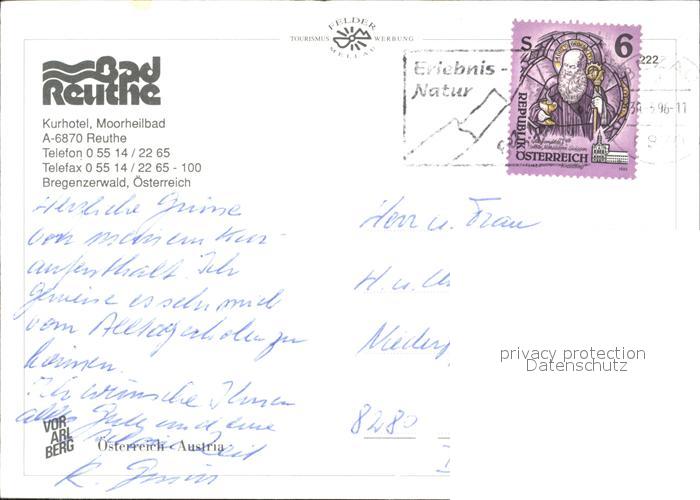 72011318 alte Postkarte Reuthe Vorarlberg Kurhotel Moorheilbad Gastraum Hallenbad postalisch gelaufen Erhaltung siehe scans KatCode: 11390341080230