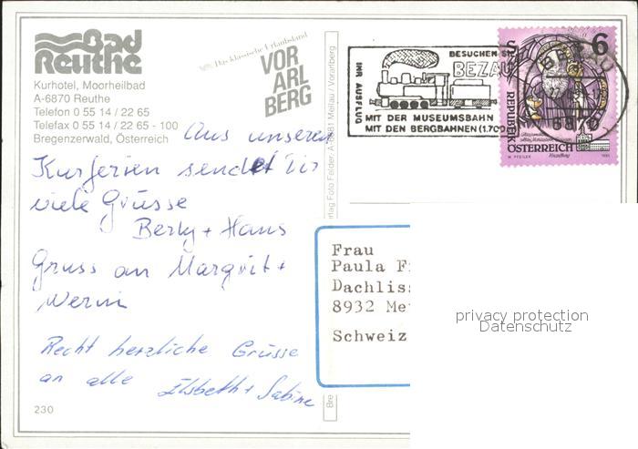 72283552 alte Postkarte Reuthe Vorarlberg Kurhotel Moorheilbad Sonnenblume postalisch gelaufen Erhaltung siehe scans KatCode: 11390341080230