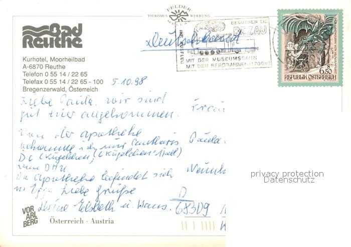 73327961 alte Postkarte Reuthe Vorarlberg Kurhotel Moorheilbad Sonnenblume postalisch gelaufen Erhaltung siehe scans [FriedD77] KatCode: 11390341080230