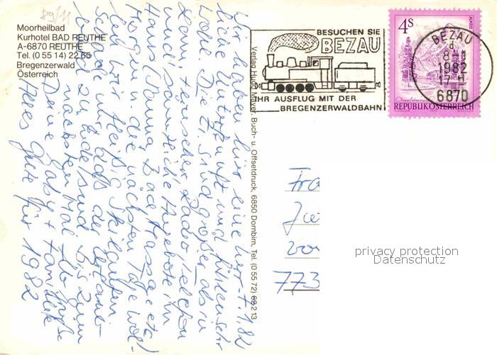 72666098 alte Postkarte Reuthe Vorarlberg Moorheilbad Bad Reuthe Kurhotel Hallenbad postalisch gelaufen Erhaltung siehe scans [WerneD78] KatCode: 11390341080230