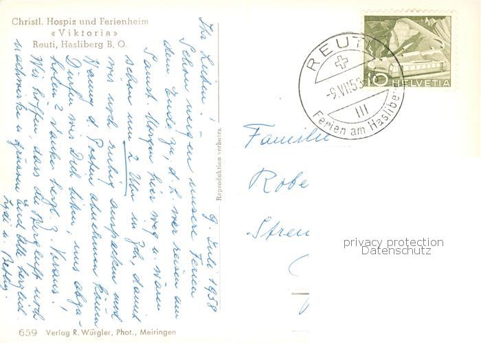 13858178 alte Postkarte Reuti-Hasliberg Reuti-Hasleberg BE Christliches Hospiz und Ferienheim Viktoria Berner Alpen postalisch gelaufen Fliegeraufnahme Erhaltung siehe scans [FriedD77] KatCode: 11470060210582
