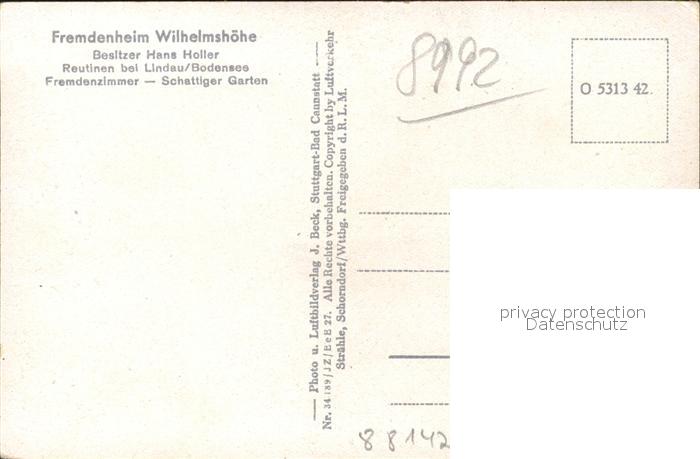 31729782 Reutin Lindau Wasserburg Fliegeraufnahme Fremdenheim Wilhelmshoehe postalisch nicht gelaufen Erhaltung siehe scans KatCode: 11110009776116