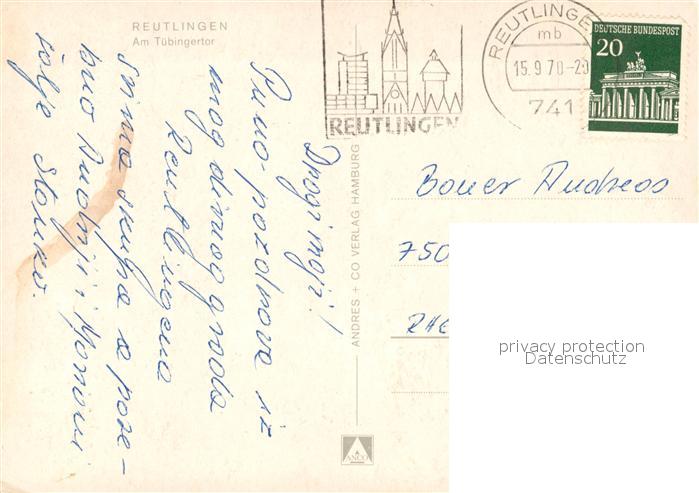 73269498 alte Postkarte Reutlingen BW Am Tuebingertor postalisch gelaufen Erhaltung siehe scans [WerneD78] KatCode: 11110008415061