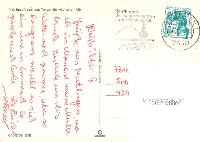 73774964 alte Postkarte Reutlingen BW Bahnhof Gartentor Wilhelmstrasse Tuebinger Tor Skulptur am Bahnhof Zwinger postalisch gelaufen Erhaltung siehe scans [WerneD78] KatCode: 11110008415061