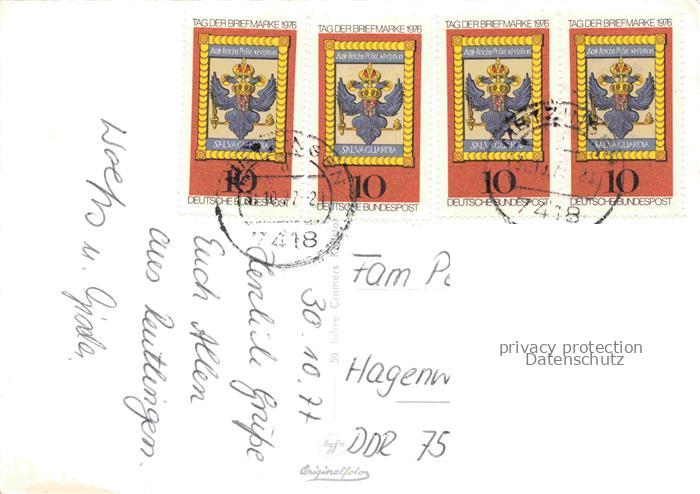 74037793 alte Postkarte REUTLINGEN BW Fliegeraufnahme Schloss Lichtenstein Tuebinger Tor Technikum der Textilindustrie Marienkirche postalisch gelaufen Erhaltung siehe scans [WerneD78] KatCode: 11110008415061