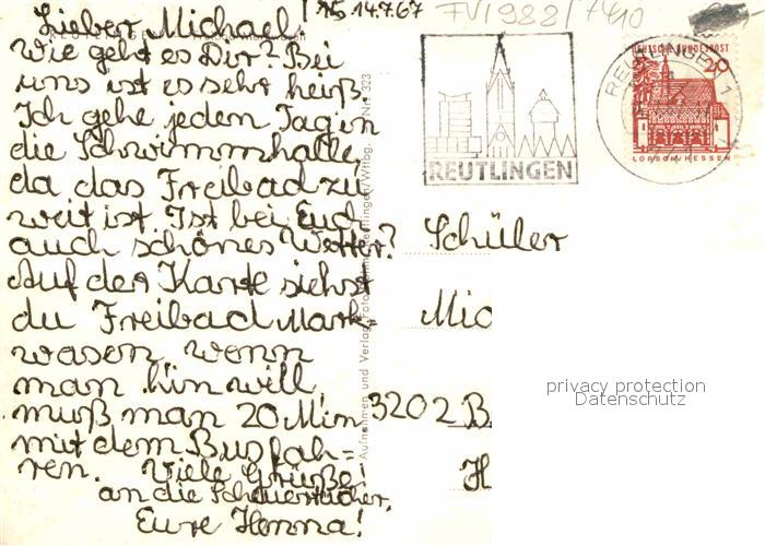 72907066 alte Postkarte Reutlingen BW Freibad Markwasen Sprungturm Rutschbahn postalisch gelaufen Erhaltung siehe scans [FriedD77] KatCode: 11110008415061