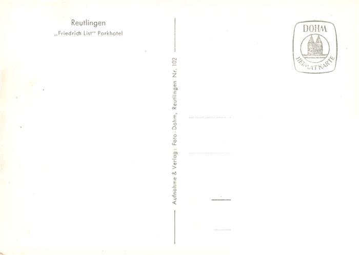 73869355 Reutlingen BW Friedrich List Parkhotel postalisch nicht gelaufen Erhaltung siehe scans [FriedD77] KatCode: 11110008415061
