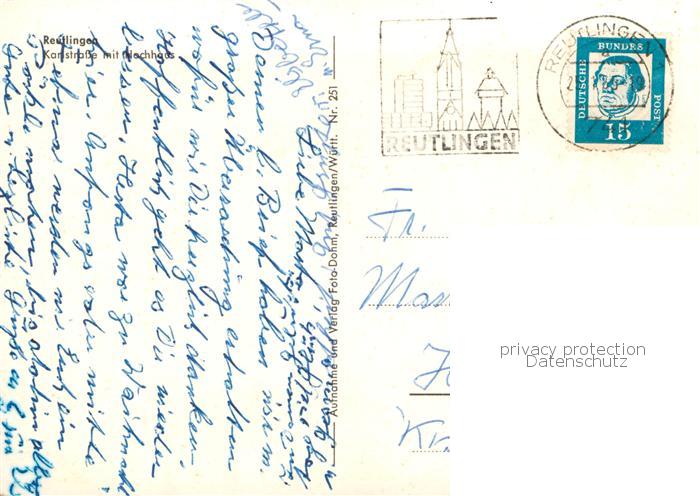 73829768 alte Postkarte Reutlingen BW Karlstrasse mit Hochhaus General Anzeiger postalisch gelaufen Erhaltung siehe scans [FriedD77] KatCode: 11110008415061