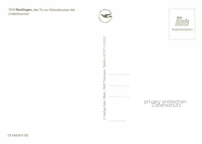 72644046 Reutlingen BW Lindenbrunnen Altstadt Tor zur Schwaebischen Alb postalisch nicht gelaufen Erhaltung siehe scans [FriedD77] KatCode: 11110008415061