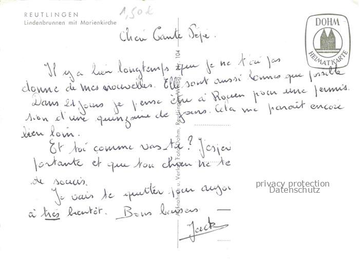 74097591 REUTLINGEN BW Lindenbrunnen Marienkirche postalisch nicht gelaufen Erhaltung siehe scans [WerneD78] KatCode: 11110008415061