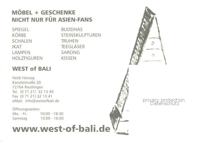 73771201 Reutlingen BW Moebel und Geschenke West of Bali postalisch nicht gelaufen Erhaltung siehe scans [WerneD78] KatCode: 11110008415061