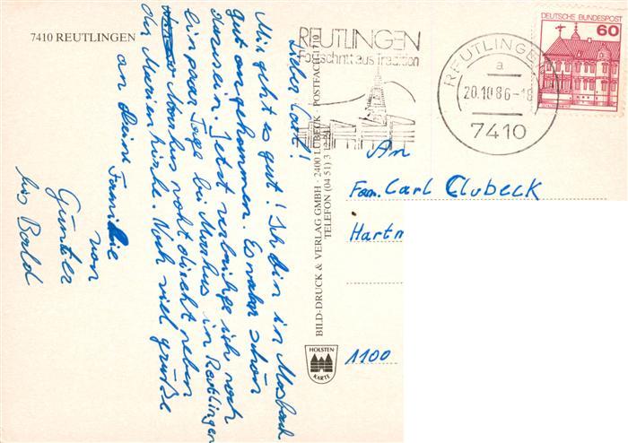 73945111 alte Postkarte Reutlingen BW Motive Altstadt Brunnen Stadttor postalisch gelaufen Erhaltung siehe scans [FriedD77] KatCode: 11110008415061