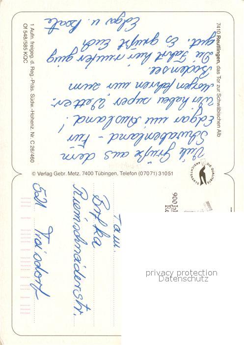 73041844 Reutlingen BW Stadttor Kirche Fachwerkhaeuser Panorama Denkmal Friedrich List postalisch nicht gelaufen Erhaltung siehe scans [WerneD78] KatCode: 11110008415061