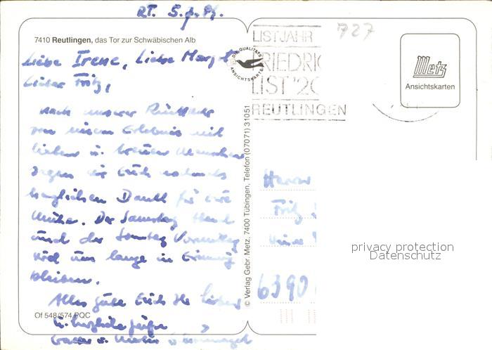 72608576 alte Postkarte Reutlingen BW Tor zur Schwaebischen Alb postalisch gelaufen Erhaltung siehe scans [LiesaD40] KatCode: 11110008415061