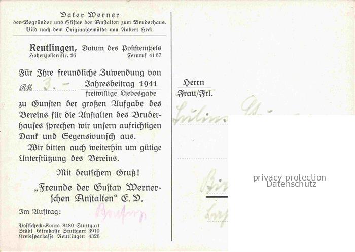 34144465 REUTLINGEN BW Vater Werner Portrait postalisch nicht gelaufen Erhaltung siehe scans [WerneD78] KatCode: 11110008415061