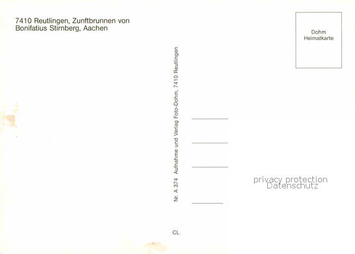 72857026 Reutlingen BW Zunftbrunnen von Bonifatius Stirnberg Figuren postalisch nicht gelaufen Erhaltung siehe scans [FriedD77] KatCode: 11110008415061