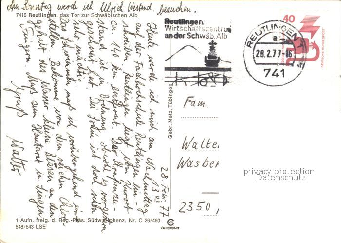 72541103 alte Postkarte Reutlingen Chronik Teilansicht Fachwerkhaus mit Turm postalisch gelaufen Erhaltung siehe scans [AndreD76 kt119box] KatCode: 11110008415061