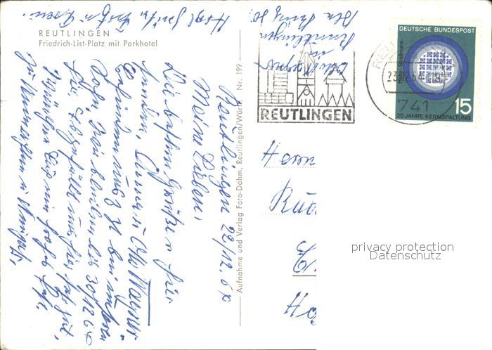 72052826 alte Postkarte Reutlingen Friedrich List Platz mit Parkhotel Tulpenbeet postalisch gelaufen Erhaltung siehe scans KatCode: 11110008415061