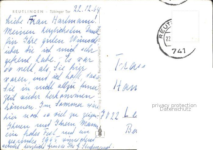 72535513 alte Postkarte Reutlingen Tuebinger Tor postalisch gelaufen Erhaltung siehe scans [AndreD76 kt121box] KatCode: 11110008415061