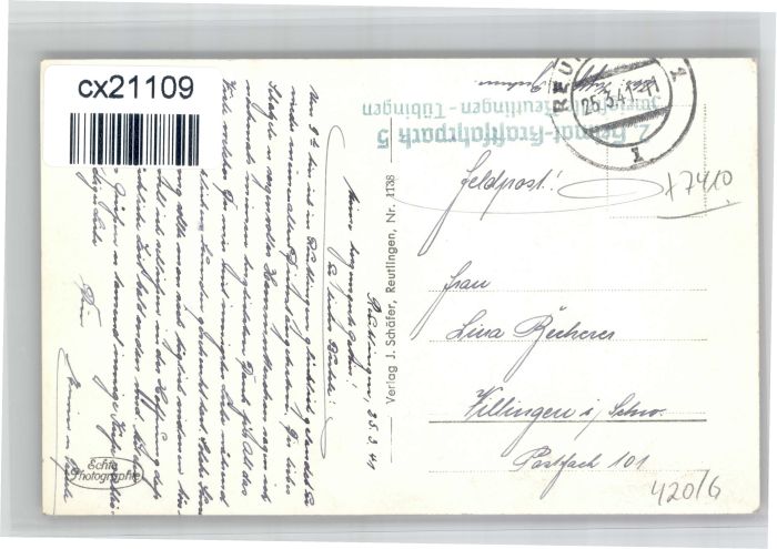 30739623 alte Postkarte Reutlingen Wilhelmstrasse Strassenbahn postalisch gelaufen KatCode: 11110008415061
