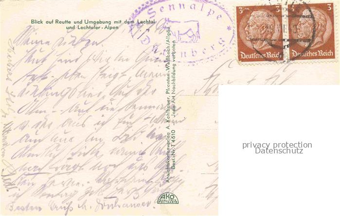 74053461 alte Postkarte Reutte Tirol AT Blick vom Duerrnberg postalisch gelaufen Erhaltung siehe scans [WerneD78] KatCode: 11390331070828