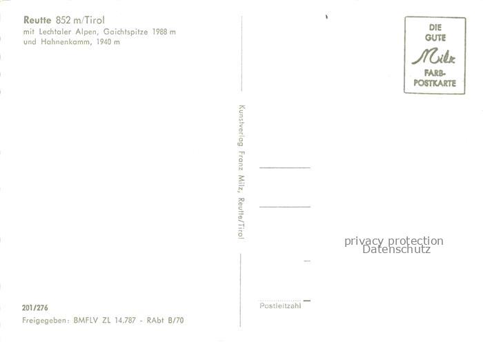 74111003 Reutte Tirol AT Fliegeraufnahme mit Lechtaler Alpen Gaichtspitze und Hahnenkamm postalisch nicht gelaufen Erhaltung siehe scans [WerneD78] KatCode: 11390331070828
