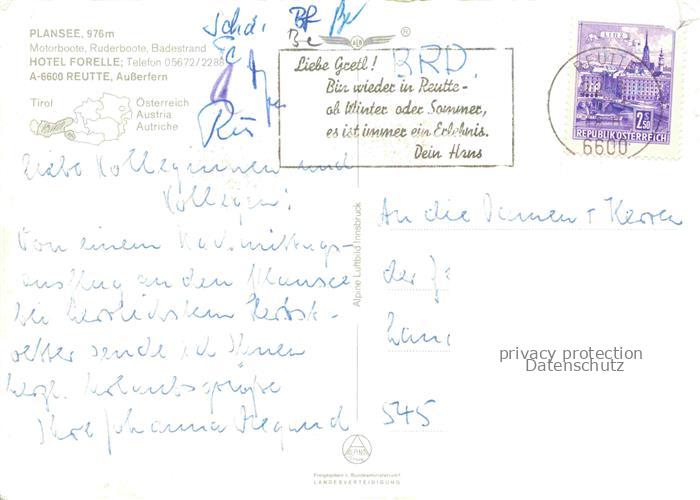 74110776 alte Postkarte Reutte Tirol AT Hotel Forelle Plansee Luftbild postalisch gelaufen Erhaltung siehe scans [IrynaD87] KatCode: 11390331070828