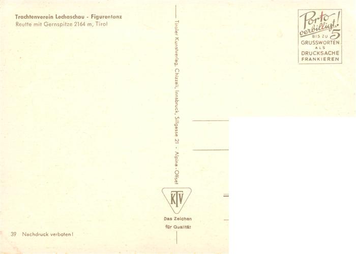 73908336 Reutte Tirol AT Trachtenverein Lechaschau Figurentanz postalisch nicht gelaufen Erhaltung siehe scans [WerneD78] KatCode: 11390331070828