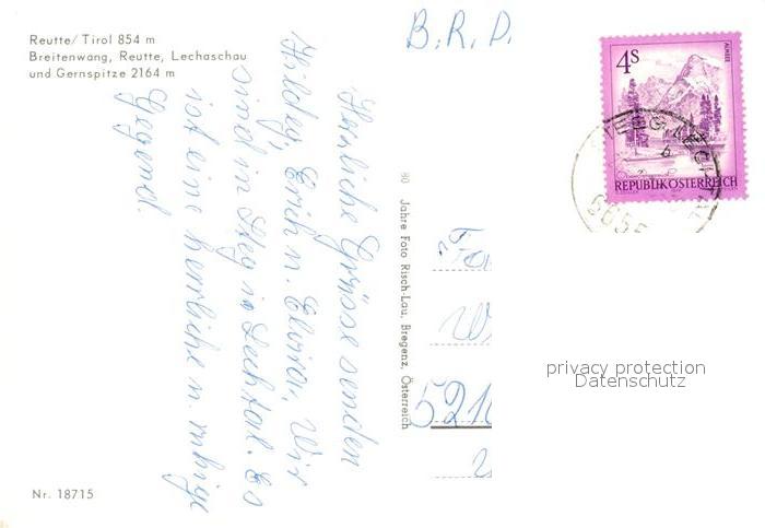 73160090 alte Postkarte Reutte Tirol Breitenwang Reutte Lechaschau und Gernspitze Fliegeraufnahme postalisch gelaufen Erhaltung siehe scans [FriedD77] KatCode: 11390331070828