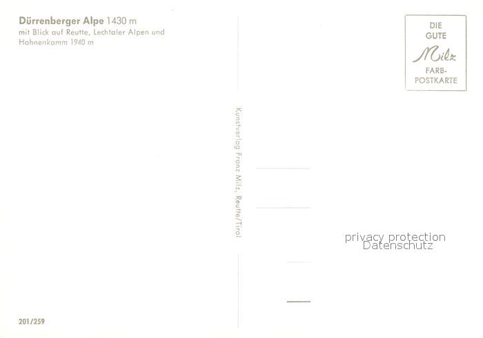 73354881 Reutte Tirol Duerrenberger Alpe mit Lechtaler Alpen und Hahnenkamm postalisch nicht gelaufen Erhaltung siehe scans [WerneD78] KatCode: 11390331070828