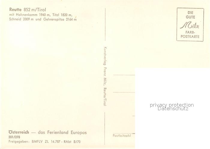 73173732 Reutte Tirol Fliegeraufnahme mit Hahnenkamm Titzl Schneid Gehrenspitze postalisch nicht gelaufen Erhaltung siehe scans [LiesaD40] KatCode: 11390331070828