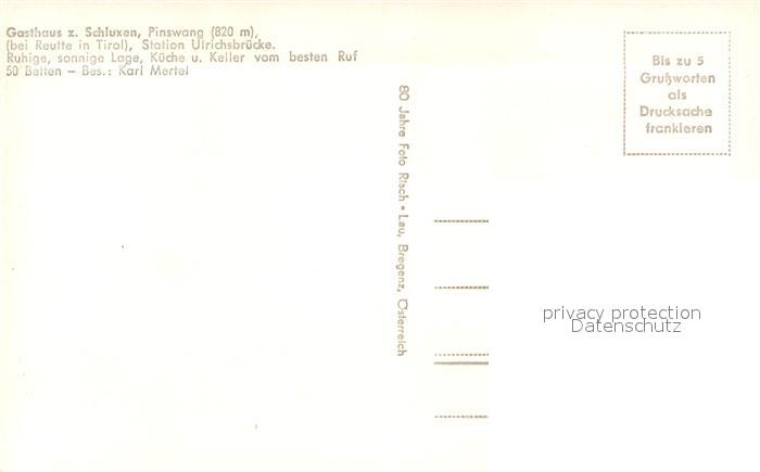 32908526 Reutte Tirol Gasthaus zum Schluxen postalisch nicht gelaufen Erhaltung siehe scans [AndreD76] KatCode: 11390331070828