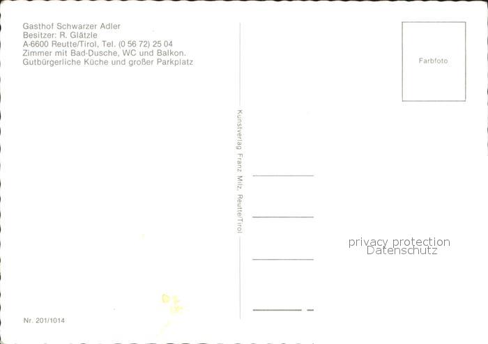 12570886 Reutte Tirol Gasthof Schwarzer Adler postalisch nicht gelaufen Erhaltung siehe scans [NatalD47] KatCode: 11390331070828