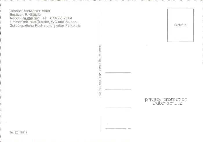 72489800 Reutte Tirol Gasthof Schwarzer Adler Gaststube Rezeption postalisch nicht gelaufen Erhaltung siehe scans KatCode: 11390331070828