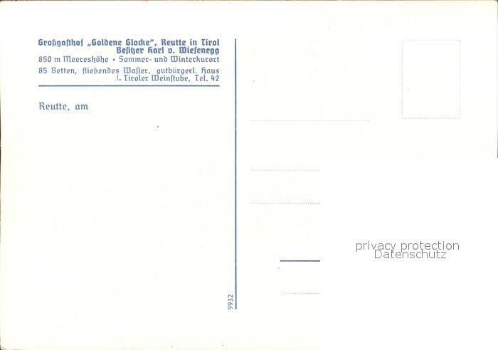 12046207 Reutte Tirol Gasthof zur goldenen Glocke postalisch nicht gelaufen Erhaltung siehe scans KatCode: 11390331070828