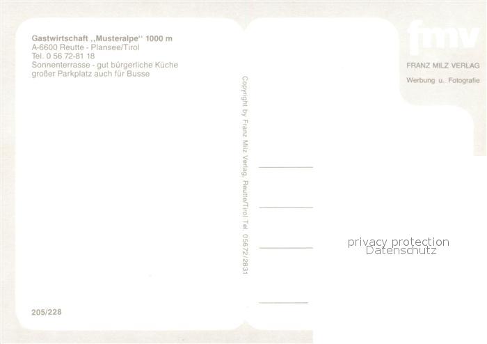 12935038 Reutte Tirol Gastwirtschaft Musteralpe postalisch nicht gelaufen Erhaltung siehe scans [AndreD76] KatCode: 11390331070828