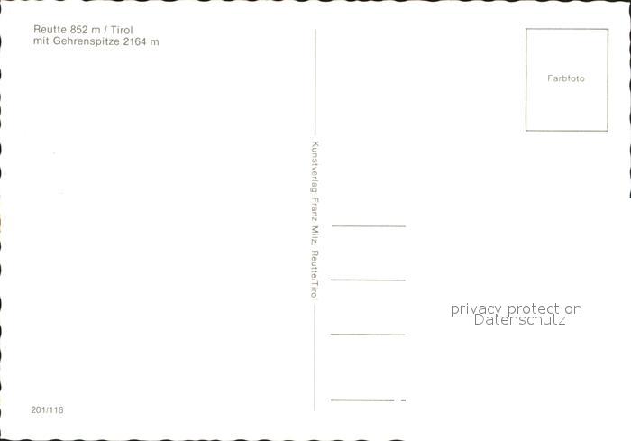 72232341 Reutte Tirol Gehrenspitze postalisch nicht gelaufen Erhaltung siehe scans KatCode: 11390331070828